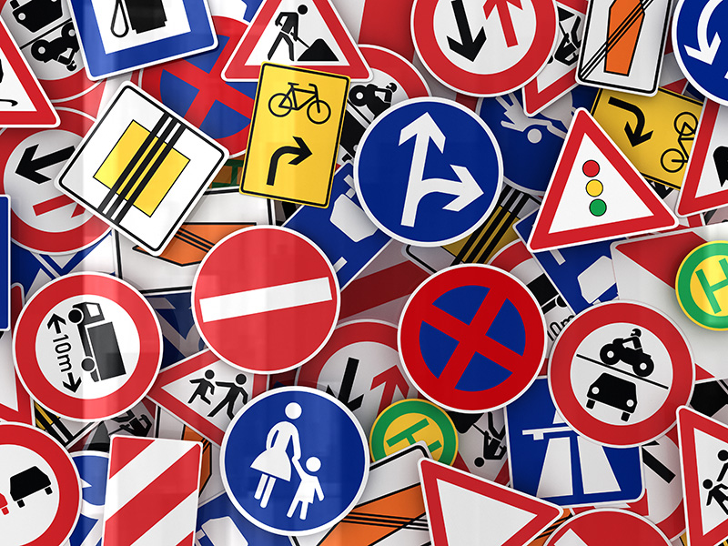 交通標誌分為主標誌(警告標誌、禁令標誌、指示標誌和指路標誌)輔助標誌以及其他標誌,交通標誌設置形式一般為柱式、懸臂式、門式和附著式標誌。